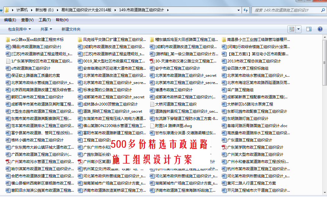 我是去年买的这个施工组织设计大全,当时买的时候有点不相信,就怕买回来的资料没价值,购买之后我发现我错了,这份资料对我来说真的很有价值,里面有28000多个施工组织设计文件,而且都是word格式的,可以编辑修改,这点很重要,我在做投标文件时就可直接套用里面的范本,修改修改就是我的了,工作效率大大提高了,更值得一提的事这个资料还可以免费升级,每个月都有新的文件出来,直接在网上下载就可以了,我去年买的一直都更新着,非常感谢提供这么好的一份资料!