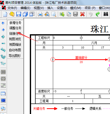 “综合管架施工”与“烟道安装”的搭接关系,此时松开鼠标就可以自动建立关系并合并节点了。 |