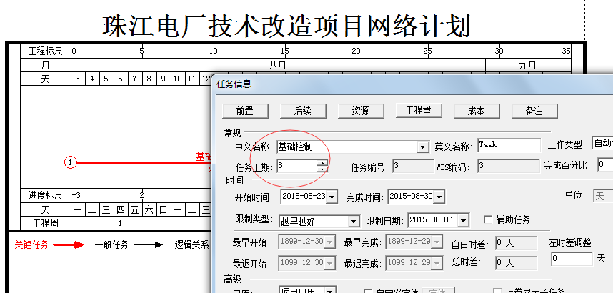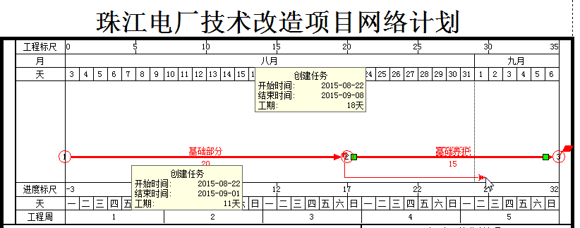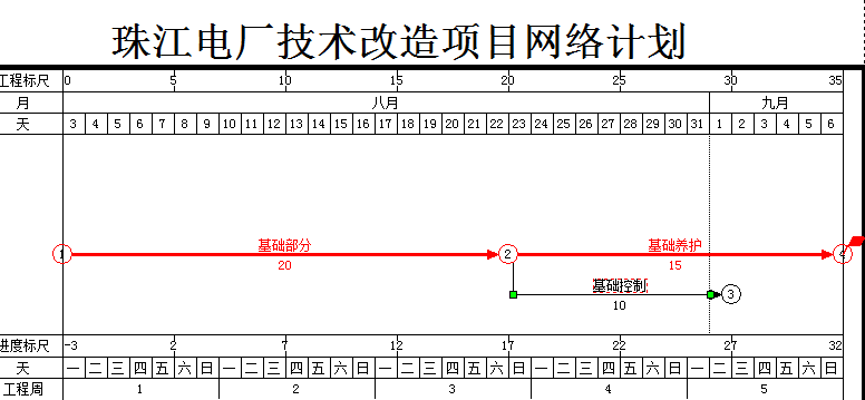 在“基础部分”完成之后,“基础养护”和“控制室施工”同时开始。