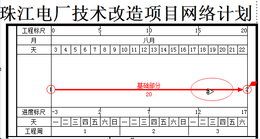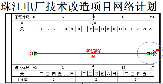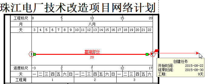 7、方法3:将鼠标移动到【基础部分】任务箭线的右半部分上,此时,鼠标样式会变成如下图所示的右箭头样式。此时双击鼠标左键就会弹出新建任务对话框。按照上述的操作方法录入任务名称、工期即可。 |