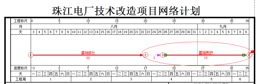 5、如下图所示,“基础部分”完成之后,“基础养护”马上开始。软件自动进行了节点的合并 |